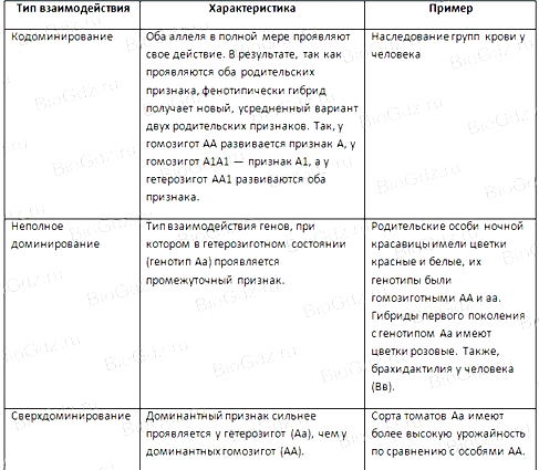 Zapolnite Tablicu Tipy Vzaimodejstviya Allelnyh Genov Univer Soloby